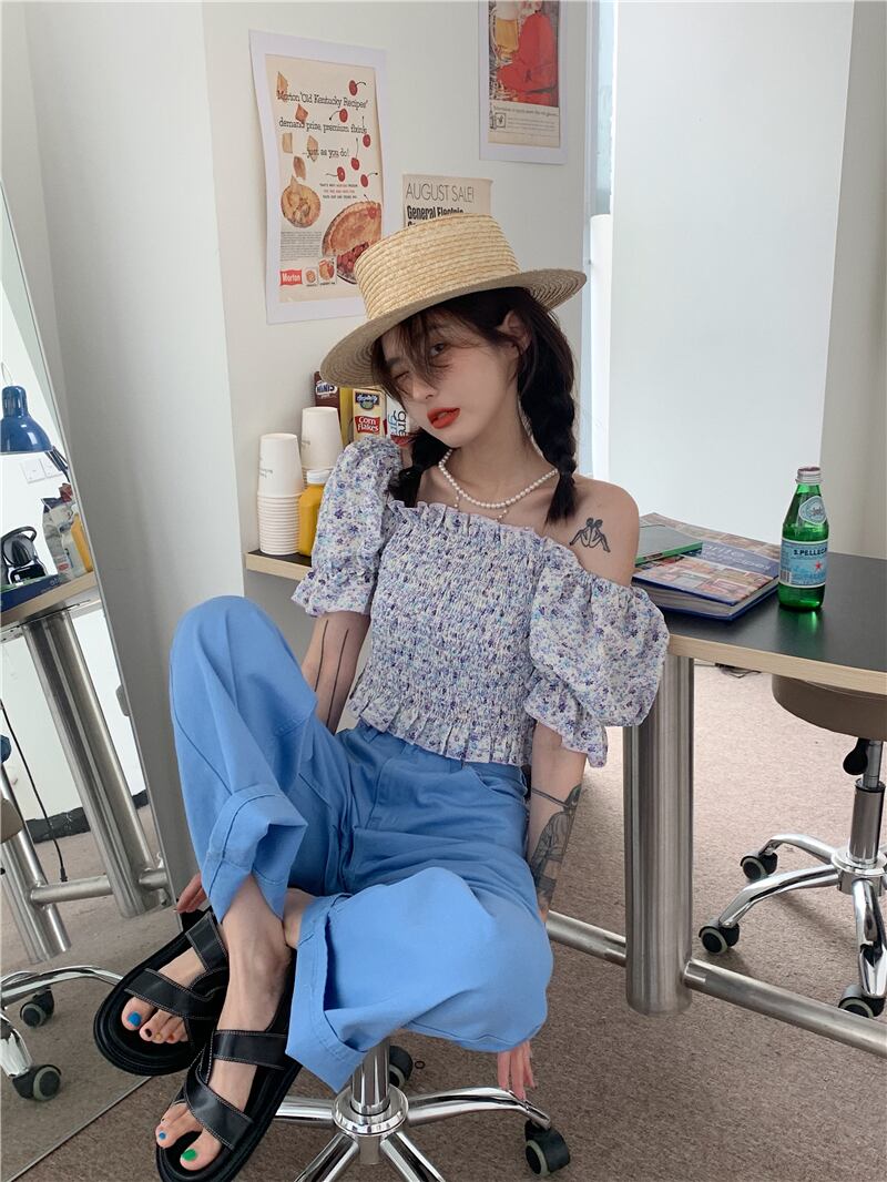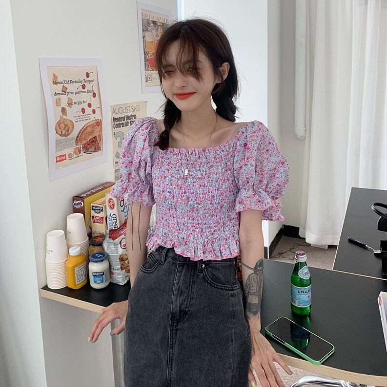 (2色選択可) トップス ブラウス 半袖 パフスリーブ スクエアネック フリル シャーリング 綿 かわいい 大人可愛い 大人 おしゃれ お洒落 大人女子 こなれ感 ラブリー キュート ガーリー 個性的 主役級 存在感 小花柄 春 夏 10代 20代 30代 通勤 学生 通学 デート お出かけ お泊まり 休日 リゾート 旅行 海 プール 高原 ガーデン 韓国系 オルチャン ファッション モテ プレゼント ギフト トレンド 流行 インスタ映え パープル | Chère