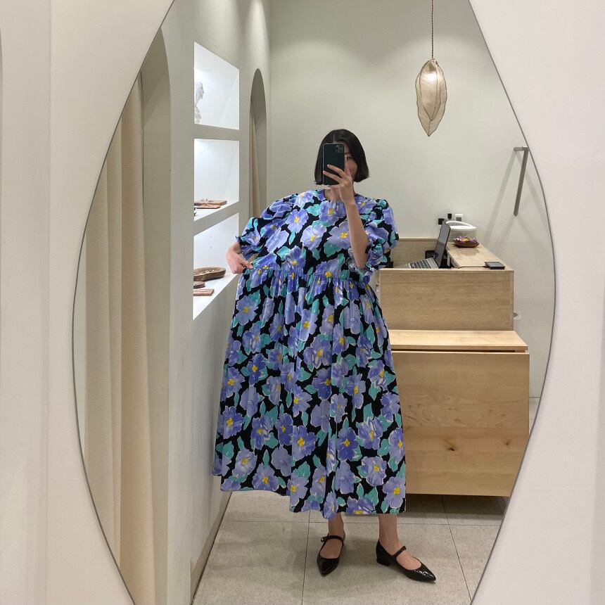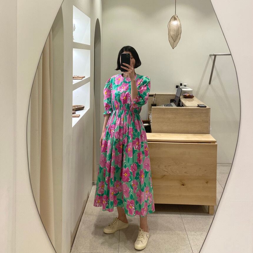(3色選択可) ワンピース ロング丈 5分袖 パフスリーブ ラウンドネック ギャザー 綿 かわいい 大人可愛い 大人 上品 おしゃれ お洒落 大人女子 こなれ感 ラフ ラブリー キュート 個性的 主役級 存在感 花柄 春 夏 秋 10代 20代 30代 40代 OL 通勤 学生 通学 デート お出かけ 休日 リゾート 旅行 高原 ホテル ガーデン レストラン オルチャン 楽ちん モテ トレンド 流行 インスタ映え パープル イエロー ピンク | Chère