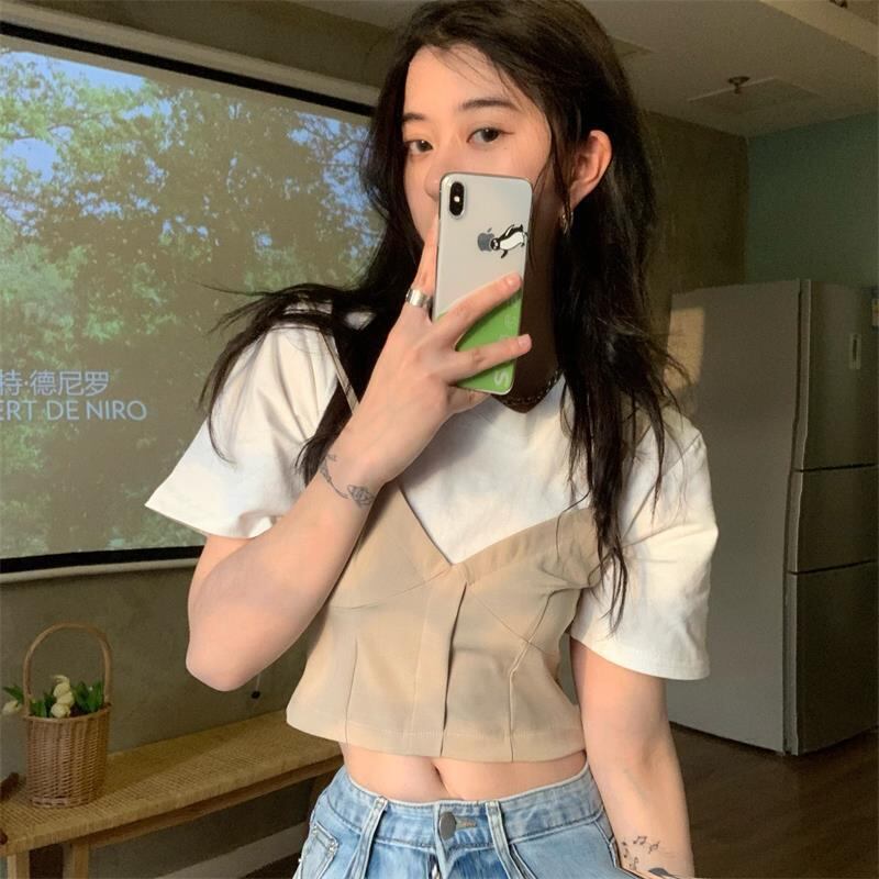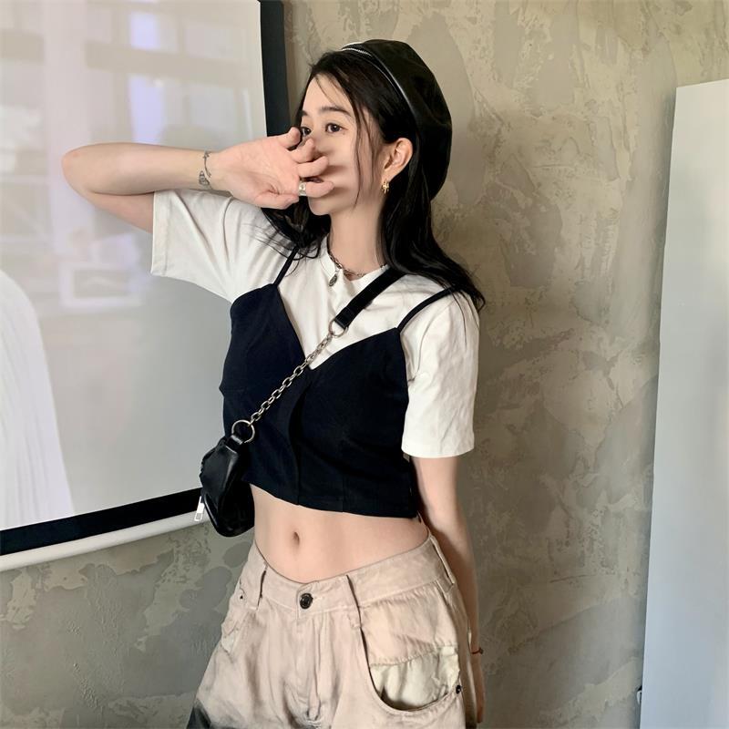 ショート丈のTシャツで、ボトムはスカートでもパンツでも