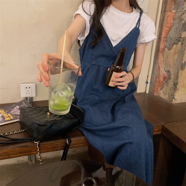 ワンピース デニムワンピ ロング丈 Aライン ハイウエスト デニム 大人可愛い きれいめ カジュアル おしゃれ お洒落 大人女子 こなれ感 ラブリー キュート 存在感 無地 春 夏 秋 10代 20代 30代 40代 学生 通学 デート お泊まり 休日 旅行 海 プール 高原 ガーデン 普段使い 韓国系 オルチャン 体系カバー インスタ映え ブルー | Chère