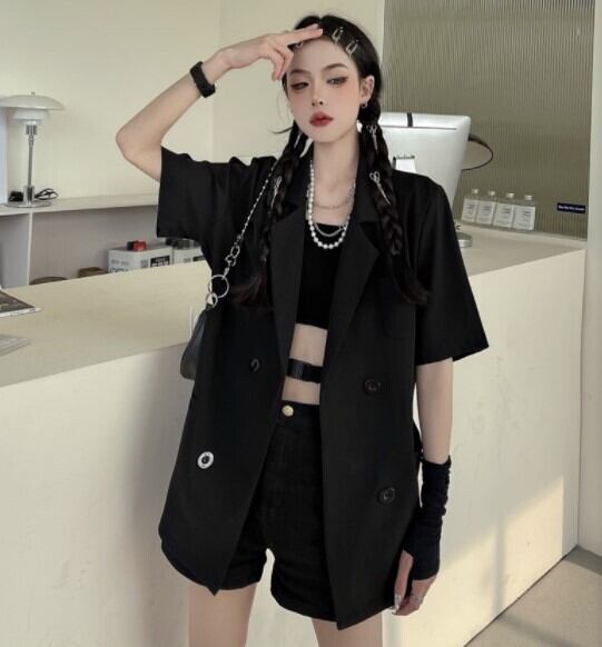 (色とサイズが選択可) アウター ジャケット 半袖 襟付き シンプル おしゃれ お洒落 かっこいい 大人女子 こなれ感 マニッシュ 個性的 クール モード系 存在感 無地 春 夏 秋 10代 20代 30代 通勤 学生 通学 お出かけ お泊まり 休日 リゾート 旅行 重ね着 楽ちん 体系カバー インスタ映え S M L ホワイト ブラック