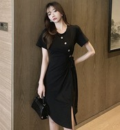 (サイズが選択可) ワンピース ワンピースドレス ひざ丈 半袖 ラウンドネック Aライン ウエストリボン コットン 大人可愛い きれいめ 大人 上品 おしゃれ お洒落 かっこいい クール エレガント 無地 20代 30代 40代 オフィス OL 通勤 デート お出かけ 高原 ホテル ガーデン レストラン 韓国系 オルチャン 美脚 脚長 インスタ映え 春 夏 秋 卒園式 M L XL 2XL 3XL ブラック | Chère