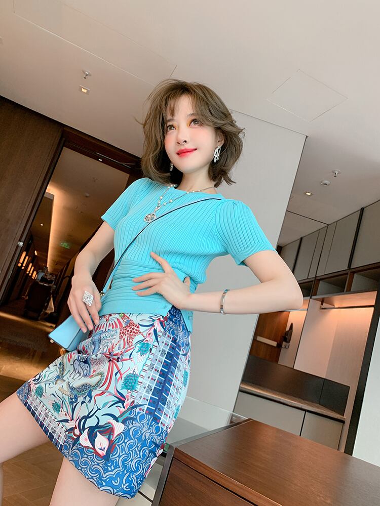 (サイズが選択可) スカート ショート丈 Aライン 大人可愛い きれいめ 大人 おしゃれ お洒落 かっこいい 大人女子 こなれ感 個性的 主役級 存在感 柄 春 夏 20代 30代 40代 通勤 デート お出かけ 高原 ホテル ガーデン レストラン コーデ 美脚 脚長 インスタ映え XS S M L XL 2XL 3XL ブルー