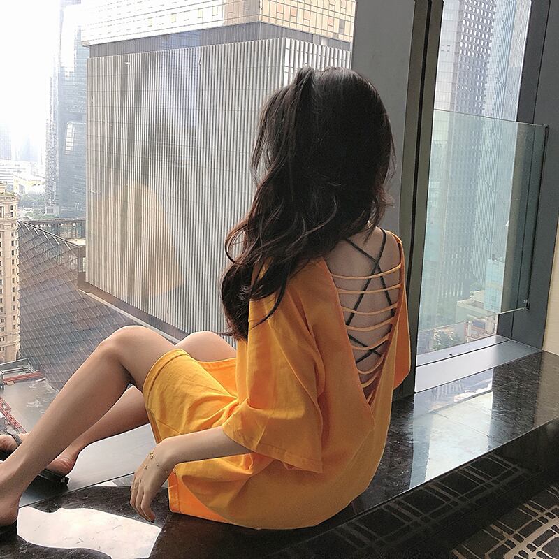 (色とサイズが選択可) トップス Tシャツ ビッグT 7分袖 Vネック バックシャン バックコンシャス コットン かわいい 大人可愛い カジュアル おしゃれ お洒落 かっこいい ラフ 個性的 セクシー 主役級 存在感 無地 春 夏 秋 10代 20代 30代 デート お出かけ 公園デビュー 休日 運動 ジム ヨガ アウトドア 旅行 海 プール 着回し 普段使い 重ね着 楽ちん 体系カバー 流行 インスタ映え M L ホワイト ブラック イエロー ピンク オレンジ | Chère