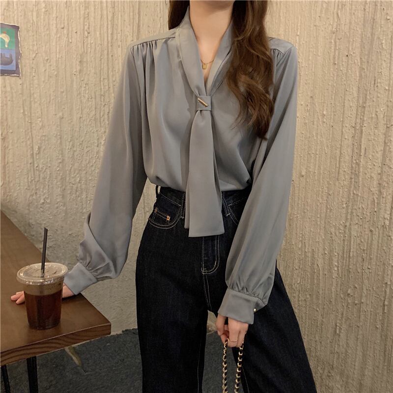 ( 6色選択可) トップス ブラウス 長袖 Vネック ボウタイ 前開き ポリエステル かわいい 大人可愛い きれいめ 大人 上品 おしゃれ お洒落 大人女子 こなれ感 モード系 エレガント モダン 主役級 存在感 無地 春 秋 冬 20代 30代 40代 50代 ビジネス OL デート お出かけ パーティー 高原 ホテル ガーデン レストラン 着回し オルチャン ファッション コーデ 定番 プチプラ トレンド 流行 インスタ映え ホワイト ブラック レッド グレー イエロー アプリコット | Chère