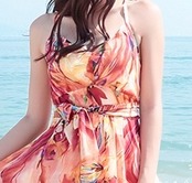 鮮やかな水彩風プリントが印象的なロングワンピース。