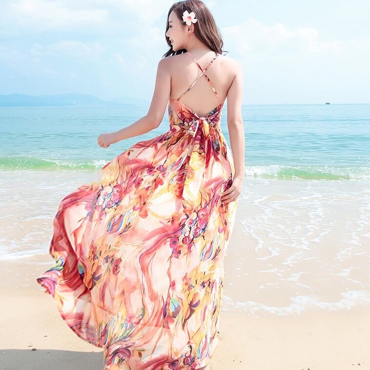 (サイズが選択可) ドレス ワンピース ロングドレス Aラインドレス ワンピースドレス マキシ丈 ノースリーブ Vネック シフォン サイドスリット ハイウエスト ポリエステル かわいい 大人可愛い きれいめ カジュアル 大人 おしゃれ お洒落 かっこいい 大人女子 こなれ感 ラフ キュート セクシー エレガント 主役級 存在感 花柄 20代 30代 休日 リゾート 旅行 海 高原 夏 S M L XL オレンジ | Chère