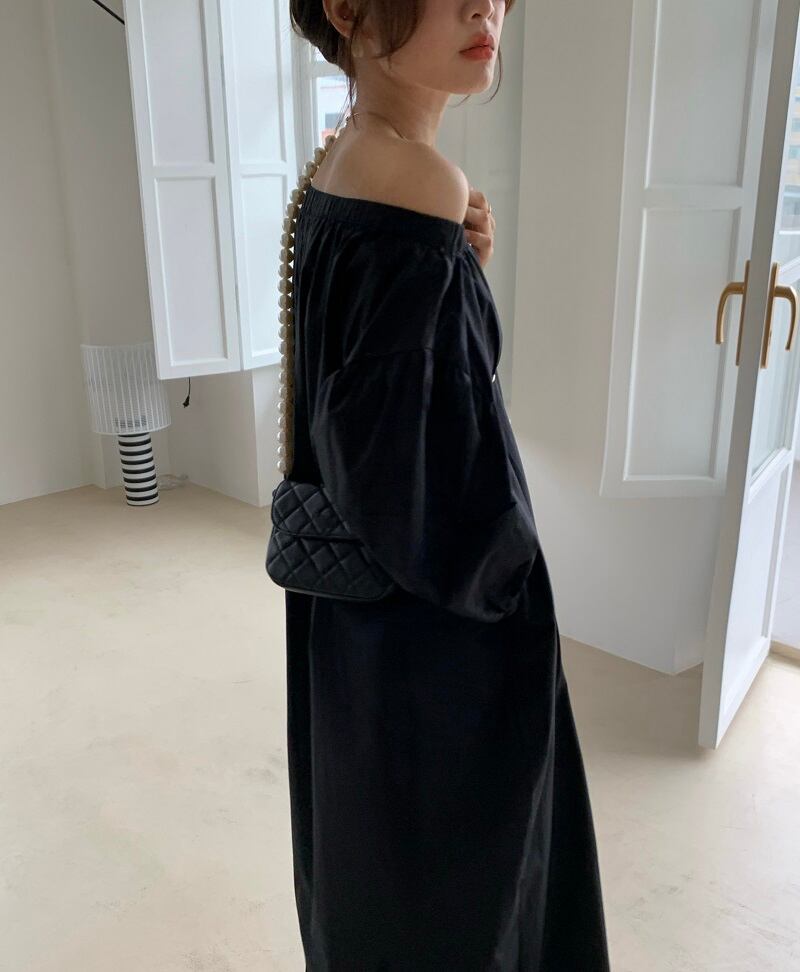 (3色選択可) ワンピース ロングドレス Iラインドレス ロング丈 7分袖 オフショルダー コットン かわいい 大人可愛い シンプル カジュアル おしゃれ お洒落 かっこいい レトロ 大人女子 こなれ感 ラブリー モード系 セクシー 主役級 存在感 無地 20代 30代 デート お出かけ お泊まり 休日 旅行 海 高原 ガーデン 韓国系 体系カバー 二の腕カバー 高見え 格上げ トレンド 流行 インスタ映え 大きめ ホワイト ブラック ライトブルー | Chère