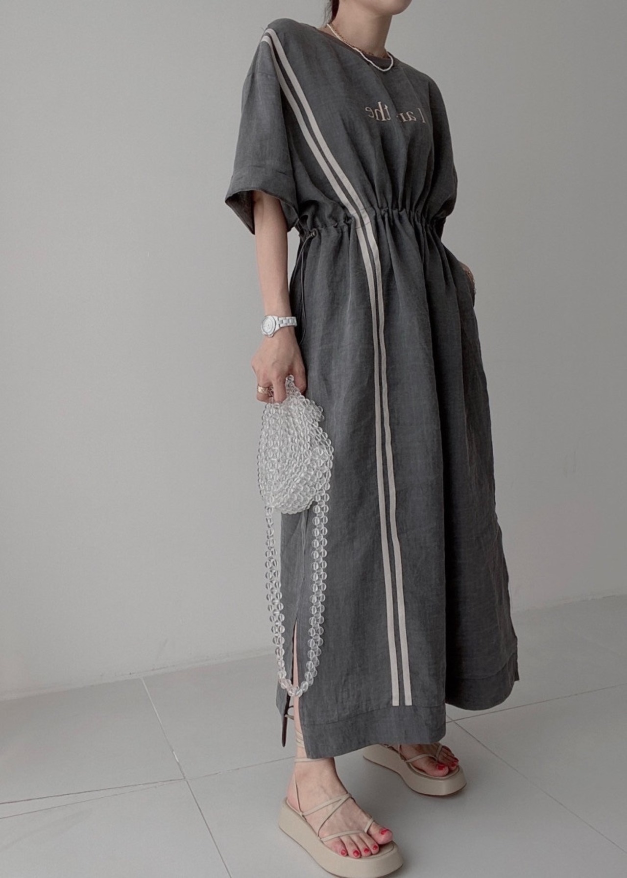 ( 5色選択可) ワンピース ワンピースドレス マキシ丈 7分袖 ラウンドネック Iライン サイドスリット コットン かわいい 大人可愛い カジュアル おしゃれ お洒落 かっこいい 大人女子 こなれ感 マニッシュ スポーティー 主役級 存在感 ドット柄 10代 20代 公園デビュー 休日 旅行 海 プール 韓国系 体系カバー 二の腕カバー インスタ映え 春 夏 秋 ブラック グレー ピンク アプリコット | Chère