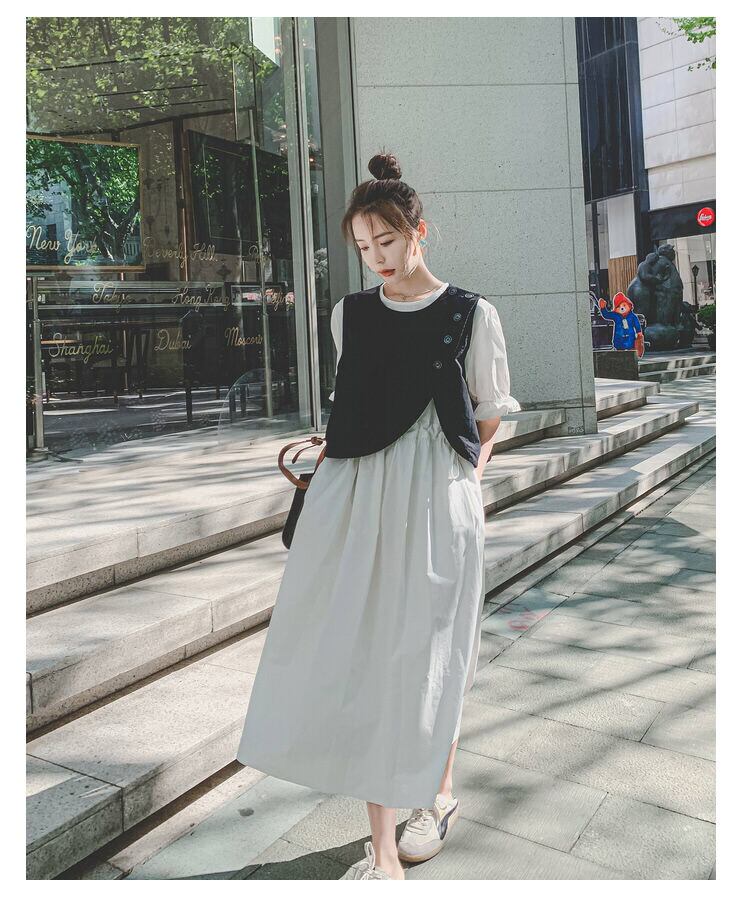 (サイズが選択可) レディース セットアップ ワンピース ベスト 2点セット ロングワンピース ロング丈 ラウンドネック 半袖 パフスリーブ フレアワンピース Aラインワンピース ギャザー ショート丈 ノースリーブ 無地 ゆったり 可愛い きれいめ シンプル カジュアル 大人 かわいい おしゃれ お洒落 上品 フェミニン 大人可愛い 大人女子 春 夏 10代 20代 30代 40代 デート お出かけ 女子会 デイリー 普段着 | Chère