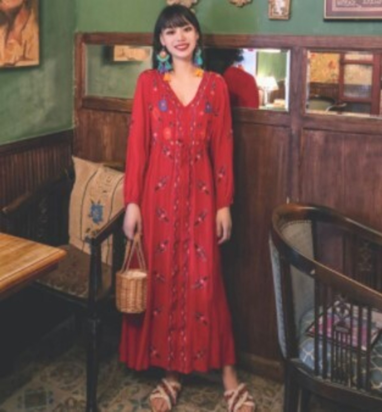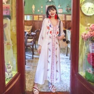 (色とサイズが選択可) ワンピース ロングドレス Aラインドレス マキシ丈 長袖 Vネック Aライン 刺繍 コットン かわいい 大人可愛い カジュアル 大人 おしゃれ お洒落 エスニック 大人女子 こなれ感 個性的 主役級 存在感 小花柄 10代 20代 デート お出かけ お泊まり 休日 リゾート 旅行 高原 ガーデン 体系カバー 二の腕カバー プチプラ モテ 流行 インスタ映え 春 秋 S M L XL ホワイト レッド ブルー イエロー | Chère