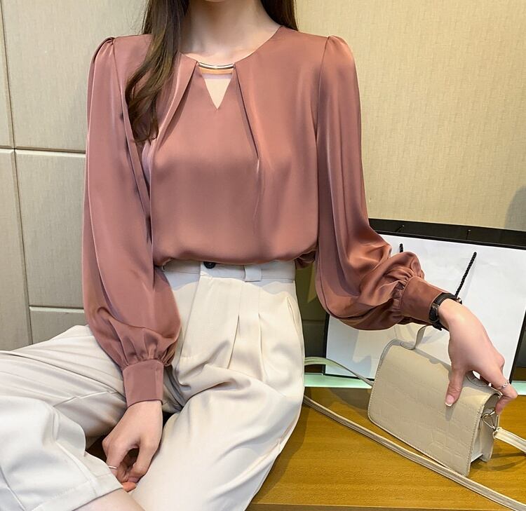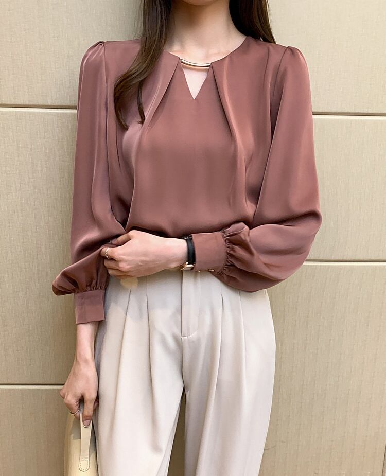 (色とサイズが選択可) トップス ブラウス 長袖 ラウンドネック ポリエステル 大人可愛い 大人 上品 おしゃれ お洒落 かっこいい 大人女子 こなれ感 個性的 クール エレガント モダン 主役級 存在感 とろみ感 無地 春 秋 冬 20代 30代 40代 50代 OL 通勤 デート パーティー 高原 ホテル ガーデン レストラン 着回し 韓国系 オルチャン スタイル 体系カバー 定番 トレンド 流行 インスタ映え S M L XL 2XL ホワイト ブラウン | Chère