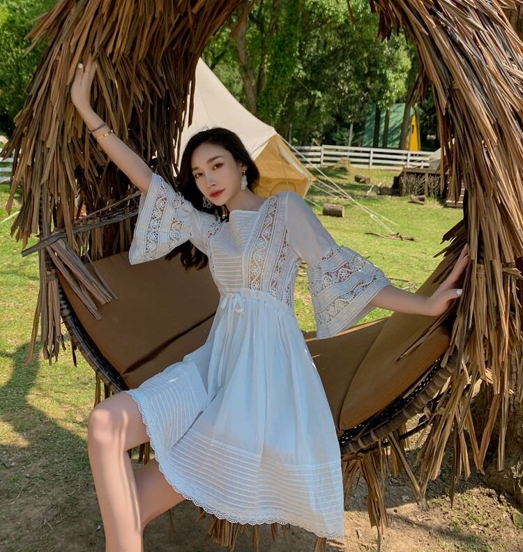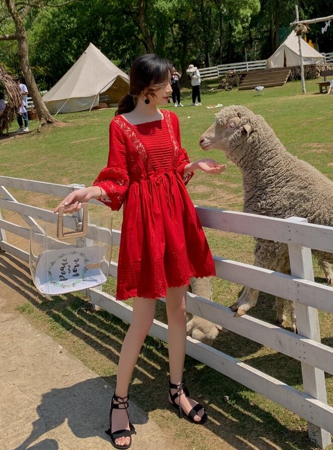 (色とサイズが選択可) ワンピース ミニドレス ショート丈 7分袖 フレアスリーブ スクエアネック Aライン レース コットン かわいい 大人可愛い シンプル 大人 おしゃれ お洒落 大人女子 こなれ感 ラブリー キュート 主役級 存在感 無地 10代 20代 デート お出かけ お泊まり 休日 パーティー イベント リゾート 海 高原 ガーデン 韓国系 オルチャン 二の腕カバー 美脚 脚長 定番 プチプラ モテ 高見え 格上げ 流行 インスタ映え 春 夏 秋 S M L XL ホワイト レッド | Chère