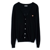 フロントには可愛い♥の刺繍、バックにはスマイルのパッチワークがポイントのカーディガンです。