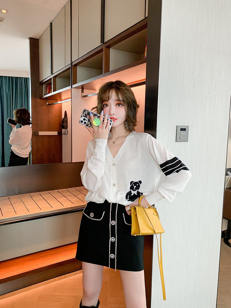 (色とサイズが選択可) トップス カーディガン 長袖 Vネック かわいい 大人可愛い カジュアル おしゃれ お洒落 かっこいい 大人女子 こなれ感 マニッシュ ラブリー 個性的 主役級 存在感 ストライプ キャラクター 春 秋 冬 10代 20代 通勤 学生 デート お出かけ お泊まり 休日 旅行 着回し 普段使い スタイル 体系カバー 流行 インスタ映え S M L XL 2XL 3XL ホワイト グリーン | Chère