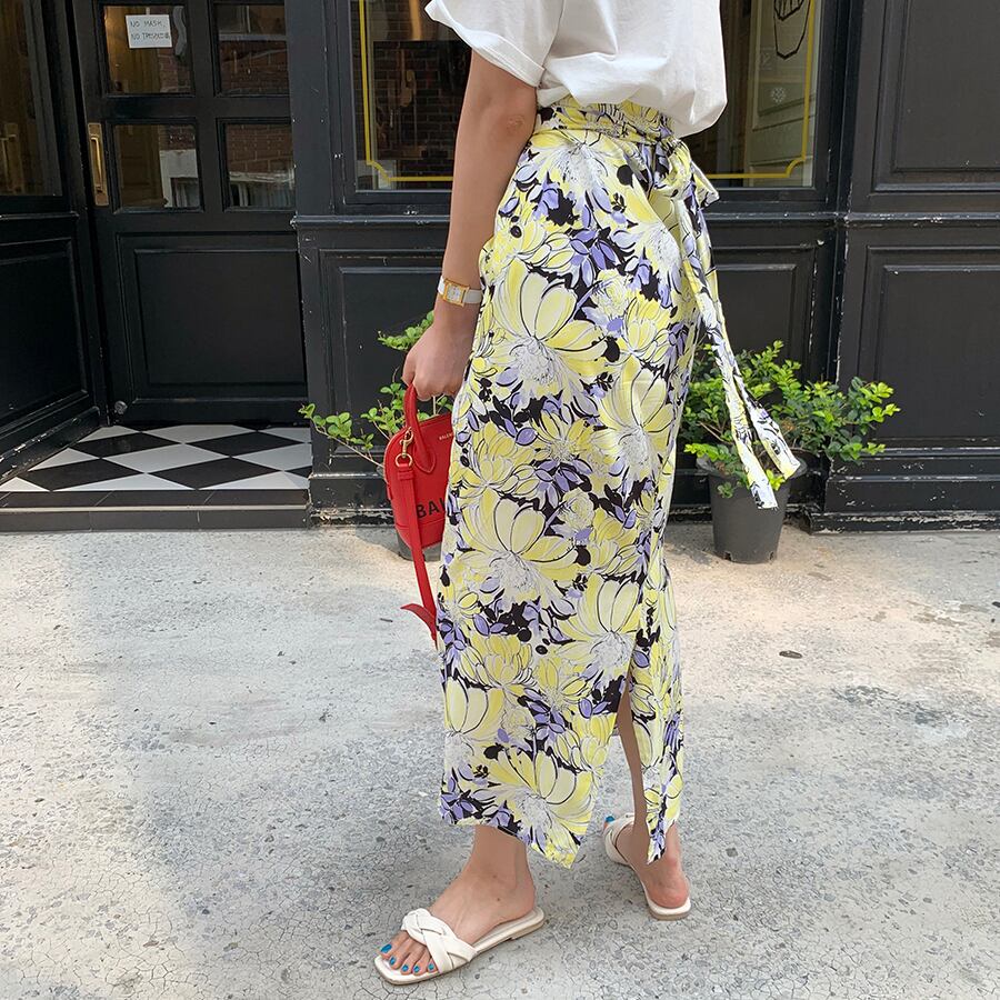 (2色選択可) スカート ボトムス 花柄スカート ロングスカート ロング丈 ミモレ丈 リボン スリット 花柄 フラワー ハイウエスト 薄手 レディース 可愛い きれいめ シンプル カジュアル 大人 かわいい おしゃれ お洒落 上品 エレガント 大人可愛い 大人女子 春 夏 10代 20代 30代 40代 デート お出かけ 女子会 デイリー 普段着 リゾート オレンジ イエロー 黄色 | Chère