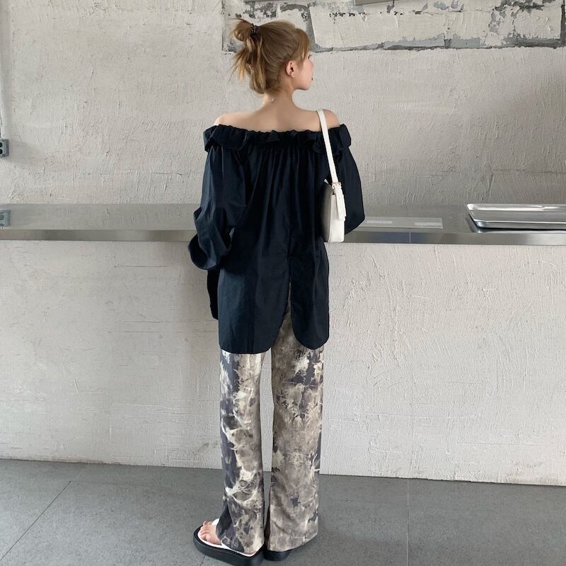 (3色選択可) トップス シャツ 長袖 オフショルダー フレア スリット コットン かわいい 大人可愛い カジュアル 大人 おしゃれ お洒落 大人女子 こなれ感 ラフ ラブリー キュート セクシー 主役級 存在感 無地 春 秋 10代 20代 デート お出かけ お泊まり 休日 リゾート 旅行 海 高原 ガーデン 着回し 普段使い 韓国系 オルチャン 体系カバー トレンド 流行 インスタ映え ホワイト ブラック ブラウン