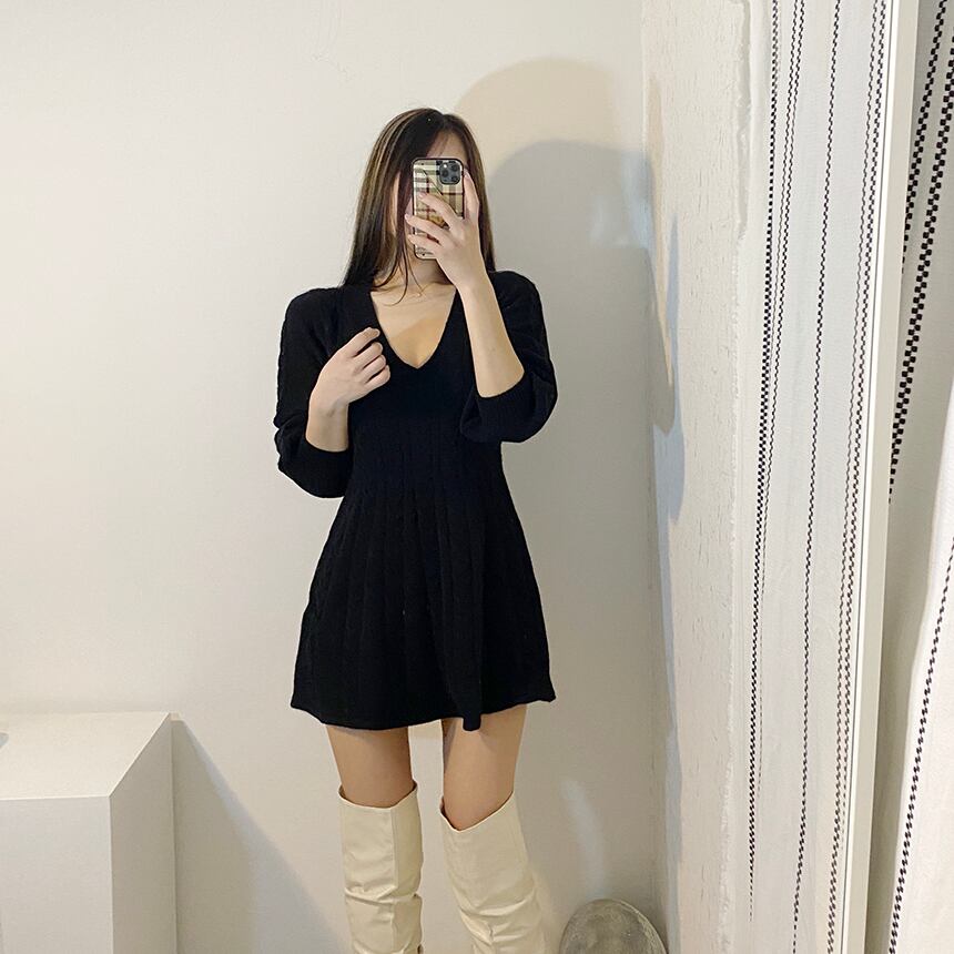 (3色選択可) ワンピース ミニ丈 長袖 ランタンスリーブ Vネック Aライン ニット かわいい 大人可愛い カジュアル 大人 おしゃれ お洒落 かっこいい 大人女子 こなれ感 個性的 セクシー 主役級 存在感 無地 春 秋 冬 10代 20代 デート お出かけ お泊まり 休日 リゾート 旅行 高原 ガーデン 着回し コーデ 美脚 脚長 トレンド 流行 インスタ映え ホワイト ブラック ブラウン | Chère