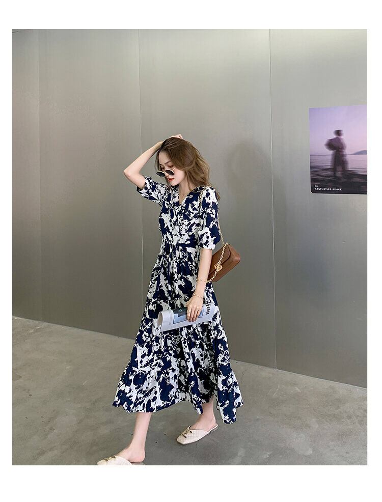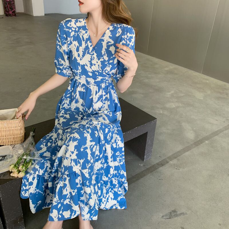 (色とサイズが選択可) ワンピース カシュクールワンピース ロングワンピース Aラインワンピース フレアワンピース ロング丈 マキシ丈 Vネック 半袖 パフスリーブ プリント柄 ウエストギャザー ティアード ハイウエスト ゆったり レディース 可愛い きれいめ シンプル カジュアル 大人 かわいい おしゃれ お洒落 上品 エレガント フェミニン 大人可愛い 大人女子 春 夏 10代 20代 30代 40代 デート お出かけ 女子会 デイリー 普段着 リゾート 海 ビーチ ブルー 青 ブラック 黒 | Chère