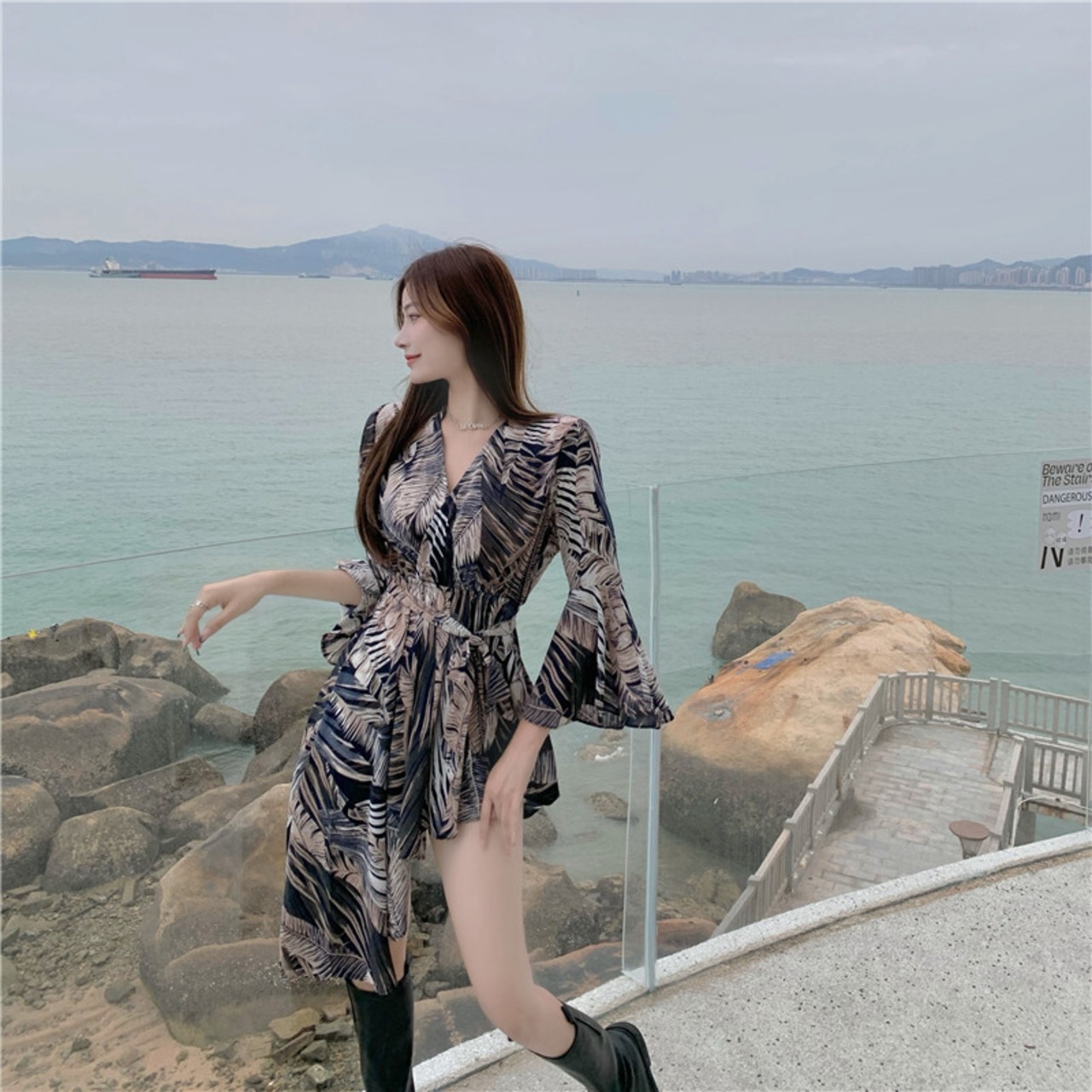 (サイズが選択可) ワンピース カシュクールワンピース ミニワンピース フレアワンピース シフォンワンピース ボタニカル柄 Vネック 長袖 フレアスリーブ 不規則 アシンメトリー ミニ丈 リボン 薄手 ゆったり レディース 可愛い きれいめ シンプル カジュアル 大人 かわいい おしゃれ お洒落 上品 エレガント フェミニン 大人可愛い 大人女子 春 夏 10代 20代 30代 デート お出かけ 女子会 デイリー 普段着 リゾート 海 ビーチ | Chère