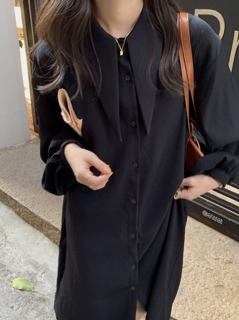 (2色選択可) ワンピース シャツワンピース ロング丈 長袖 襟付き Aライン かわいい 大人可愛い シンプル おしゃれ お洒落 かっこいい 大人女子 こなれ感 ラフ 主役級 存在感 無地 春 秋 冬 10代 20代 30代 通勤 学生 通学 お泊まり 休日 リゾート 旅行 高原 ホテル ガーデン レストラン 着回し 普段使い 韓国系 オルチャン モテ 体系カバー トレンド 流行 インスタ映え ブラック パープル | Chère