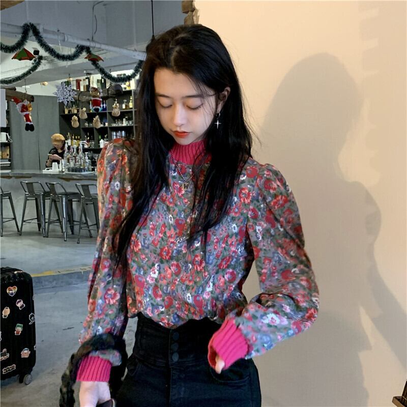 (2色選択可) トップス シャツ 長袖 萌袖 スタンドカラー かわいい 大人可愛い カジュアル 大人 おしゃれ お洒落 レトロ 大人女子 こなれ感 ラブリー キュート 主役級 存在感 小花柄 春 秋 冬 10代 20代 学生 通学 デート お出かけ お泊まり 休日 高原 ガーデン 着回し 普段使い コーデ トレンド 流行 インスタ映え レッド イエロー | Chère