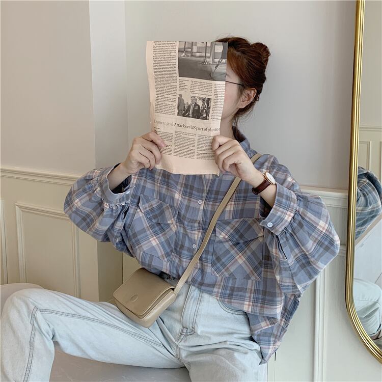 (3色選択可) トップス シャツ 長袖 Vネック 襟付き コットン かわいい 大人可愛い シンプル カジュアル おしゃれ お洒落 かっこいい 大人女子 こなれ感 マニッシュ ボーイッシュ 主役級 存在感 チェック柄 春 秋 10代 20代 30代 学生 通学 デート お出かけ 公園デビュー お泊まり 休日 旅行 高原 ガーデン 着回し 重ね着 コーデ 楽ちん 体系カバー トレンド 流行 インスタ映え ブルー グリーン ピンク | Chère