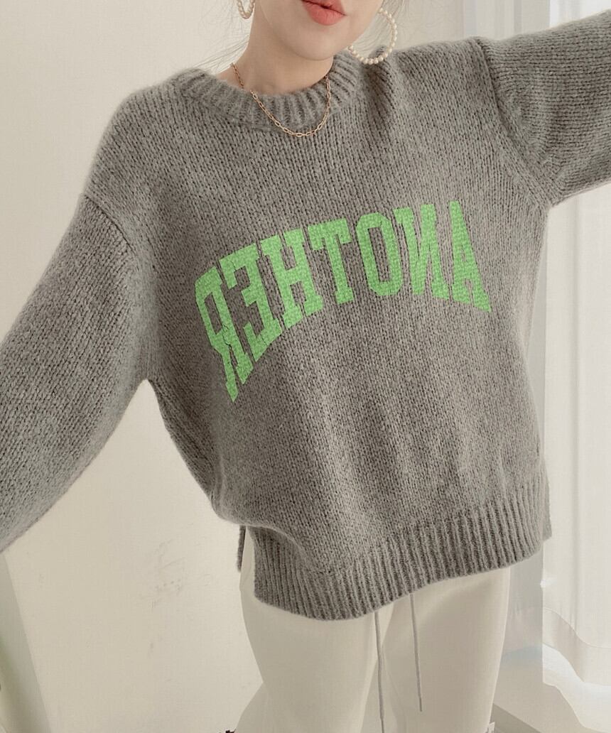 (5色選択可) セーター ニットセーター トップス ローゲージニット ざっくり編み ラウンドネック 長袖 ロゴ 厚手 ゆったり レディース 可愛い きれいめ シンプル カジュアル 大人 かわいい おしゃれ お洒落 上品 フェミニン 大人可愛い 大人女子 春 秋 冬 10代 20代 30代 40代 デート お出かけ 女子会 デイリー 普段着 ベージュ グレー ピンク グリーン カーキ
