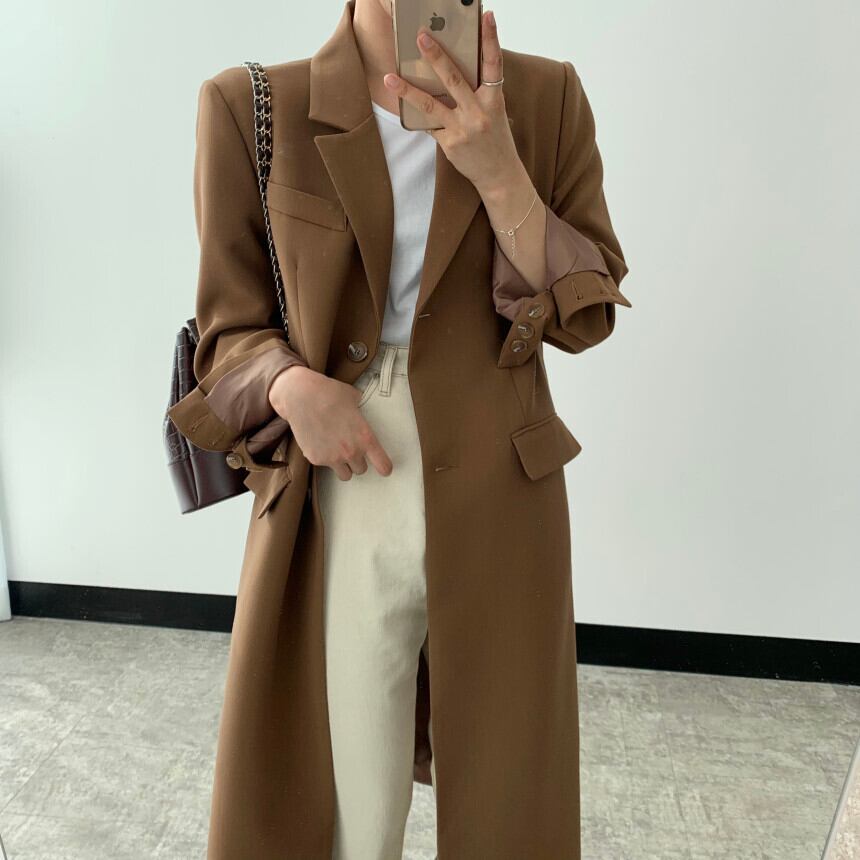 普段使いからフォーマルまで着回し抜群のシンプルでおしゃれなロングジャケット。