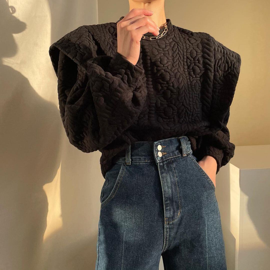 全体に施されたエンボスデザインが上品でおしゃれな重ね着風のプルオーバー。