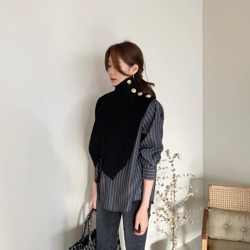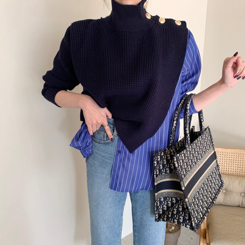 (2色選択可) トップス 異素材切替 ニット シャツ 切り替え ドッキング ストライプ柄 アシンメトリー ハイネック 長袖 ゆったり チュニック レディース 可愛い きれいめ シンプル カジュアル 大人 かわいい おしゃれ お洒落 上品 エレガント 大人可愛い 大人女子 春 秋 冬 10代 20代 30代 40代 デート お出かけ 女子会 デイリー 普段着 通勤 OL オフィス グレー 灰色 ブルー 青色 | Chère