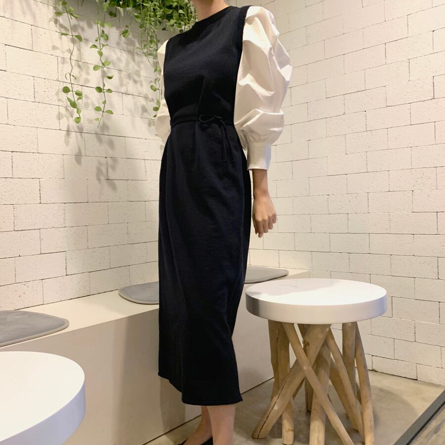 (2色選択可) ワンピース ニットワンピース 重ね着風 切り替え ロングワンピース ロング丈 ラウンドネック 長袖 パフスリーブ 無地 ゆったり レディース 可愛い きれいめ シンプル カジュアル 大人 かわいい おしゃれ お洒落 上品 エレガント 大人可愛い 大人女子 春 秋 冬 10代 20代 30代 40代 デート お出かけ 女子会 デイリー 普段着 通勤 OL オフィス カーキ ブラック 黒色 | Chère