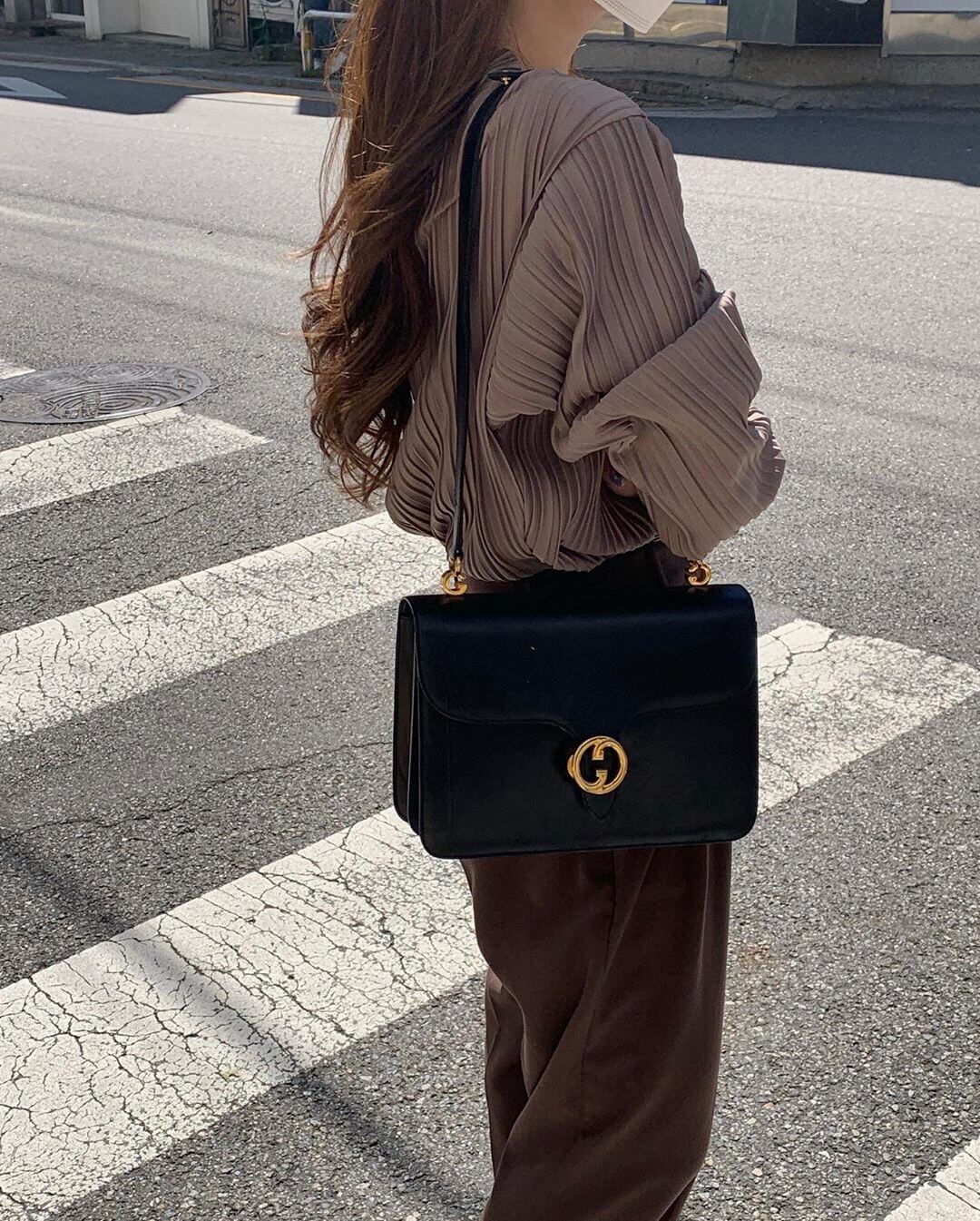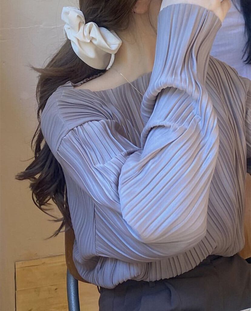 全体に入った繊細なプリーツが上品でフェミニンなブラウス。