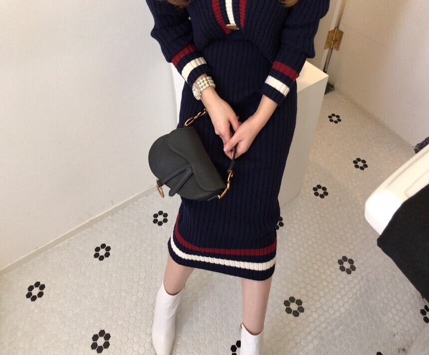 秋冬定番のニット生地でできた大人可愛いカーディガンとスカートの2点セット。