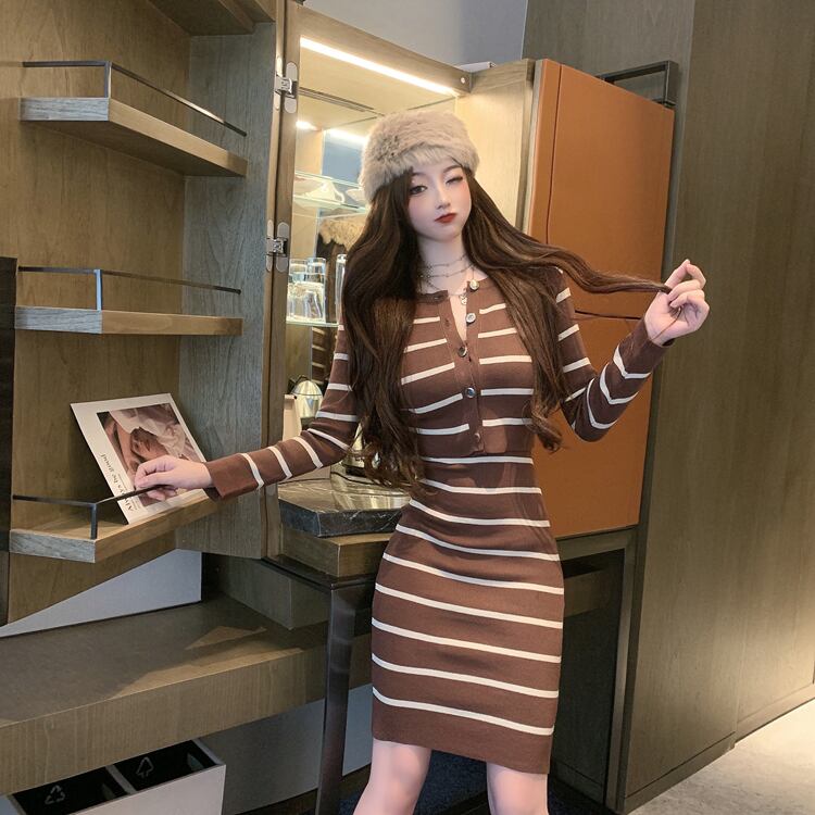 (3色選択可) セットアップ ニット トップス ワンピース ボーダー柄 2点セット カーディガン ショート丈 長袖 キャミソールワンピース ミニワンピース タイトワンピース ミニ丈 ノースリーブ セクシー 細身 レディース 可愛い きれいめ シンプル カジュアル 大人 かわいい おしゃれ お洒落 上品 フェミニン 大人可愛い 大人女子 春 秋 冬 10代 20代 30代 デート お出かけ 女子会 デイリー 普段着 ブラック 黒色 ブラウン ピンク