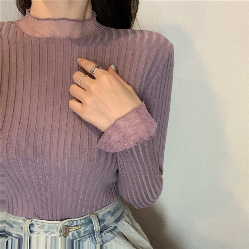 (色とサイズが選択可) ニットセーター プルオーバー 透かし編み シースルー トップス インナー タイト リブニット リブ編み ハイネック 長袖 無地 セクシー 細身 レディース 可愛い きれいめ シンプル カジュアル 大人 かわいい おしゃれ お洒落 上品 フェミニン 大人可愛い 大人女子 春 秋 冬 10代 20代 30代 40代 デート お出かけ 女子会 通勤 OL オフィス デイリー 普段着 ブラック 黒色 ホワイト 白色 ベージュ カーキ パープル 紫色 ブルー 青色 | Chère