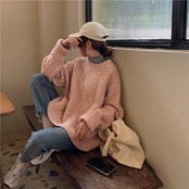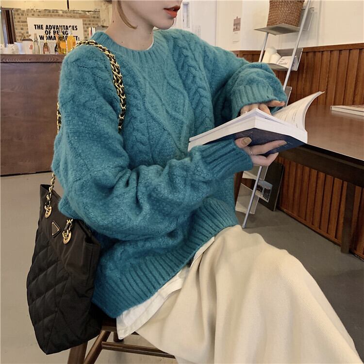 (色とサイズが選択可) トップス セーター ニットセーター ラウンドネック 長袖 ゆる ゆったり シンプル カジュアル かわいい 大人可愛い キュート ガーリー 大人女子 おしゃれ こなれ感 10代 20代 30代 40代 休日 お出かけ 女子会 デート あったか モテ コーデ 韓国系 ファッション 暖かい スタイル アプリコット ブルー 青 ピンク | Chère