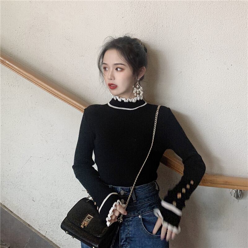 (色とサイズが選択可) トップス トレーナー セーター ハイネック タートルネック リブニット スカラップ フリル ボタン プルオーバー ショート丈 長袖 スリム バイカラー 無地 カラバリ シンプル かわいい カジュアル おしゃれ ボーイッシュ ラフ こなれ感 10代 20代 30代 40代 普段使い 休日 お出かけ デート 女子会 着回し 韓国系 ファッション コーデ あったか スタイル グレー 灰色 ホワイト 白 ブルー 青 イエロー 黄色 ピンク | Chère