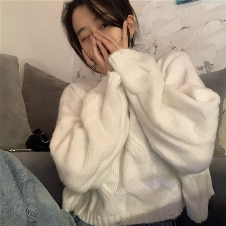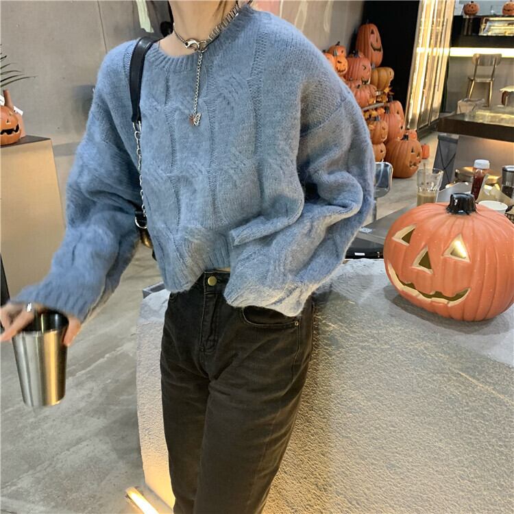 (4色選択可) ニットセーター ショート丈 プルオーバー トップス ケーブル編み ケーブルニット ラウンドネック 長袖 無地 ゆったり レディース 可愛い きれいめ シンプル カジュアル 大人 かわいい おしゃれ お洒落 上品 フェミニン 大人可愛い 大人女子 春 秋 冬 10代 20代 30代 40代 デート お出かけ 女子会 デイリー 普段着 ホワイト 白色 グリーン 緑色 ブルー 青色 ピンク | Chère