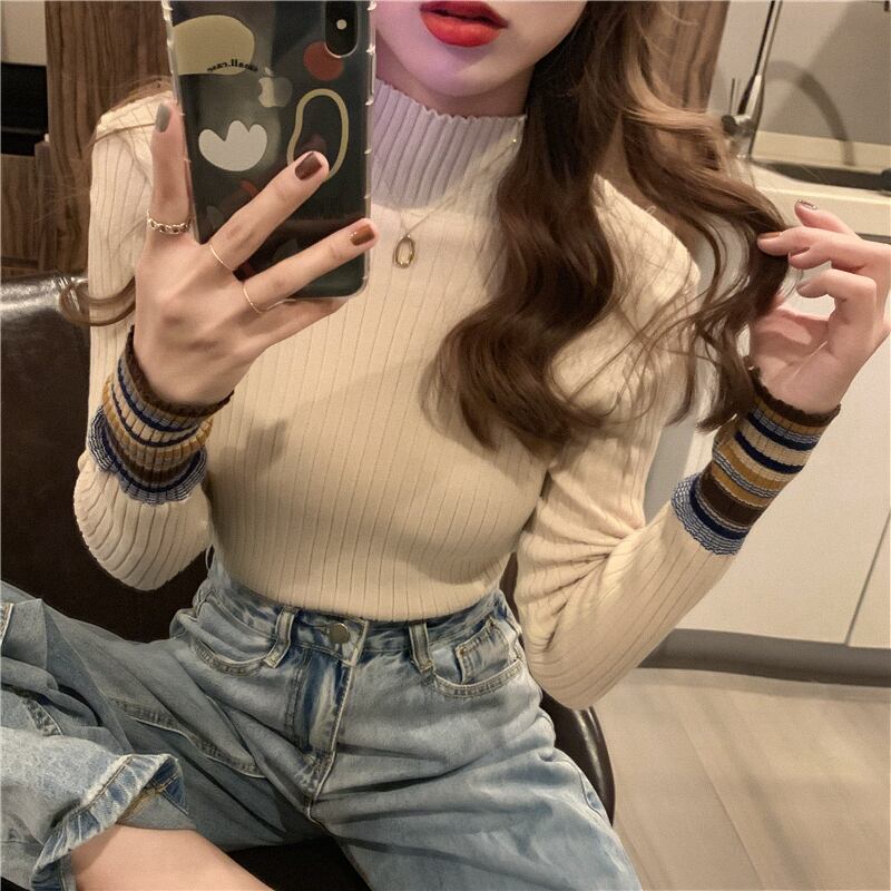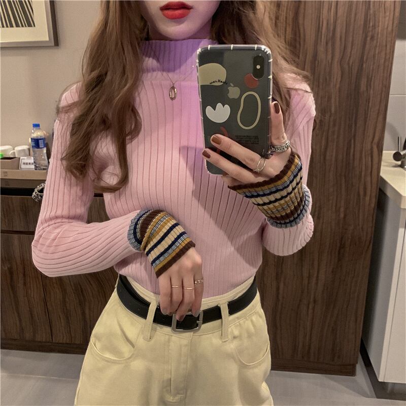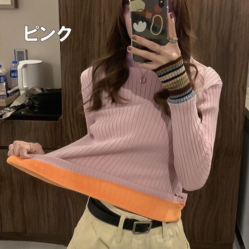 (4色選択可) トップス トレーナー セーター リブニット プルオーバー ショート丈 マルチカラ― ハイネック タートルネック 長袖 スリム タイト 無地 カラバリ シンプル かわいい カジュアル おしゃれ ボーイッシュ ラフ こなれ感 10代 20代 30代 40代 普段使い 休日 お出かけ デート 女子会 着回し 韓国系 ファッション コーデ あったか スタイル グレー 灰色 ホワイト 白 ブルー 青 イエロー 黄色 ピンク | Chère