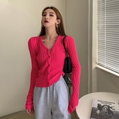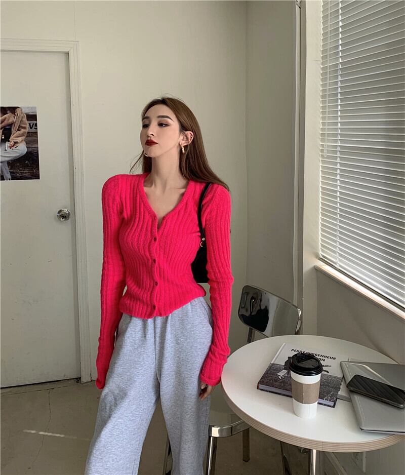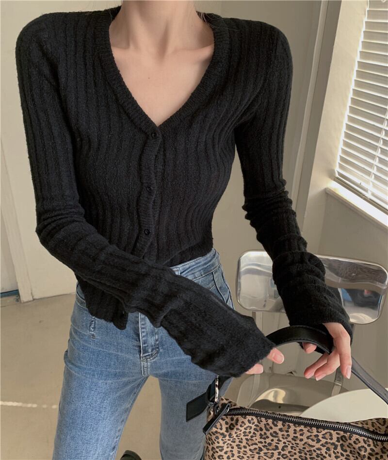 (2色選択可) カーディガン ニットカーディガン ショート丈 トップス 前開き リブニット リブ編み Vネック 長袖 無地 細身 スリム レディース 可愛い きれいめ シンプル カジュアル 大人 かわいい おしゃれ お洒落 上品 フェミニン 大人可愛い 大人女子 春 秋 冬 10代 20代 30代 40代 デート お出かけ 女子会 通勤 OL オフィス デイリー 普段着 ブラック 黒色 ローズレッド | Chère