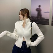 アレンジ自在なダブルジップでレイヤードコーデを楽しめる大人可愛いニットカーディガン。