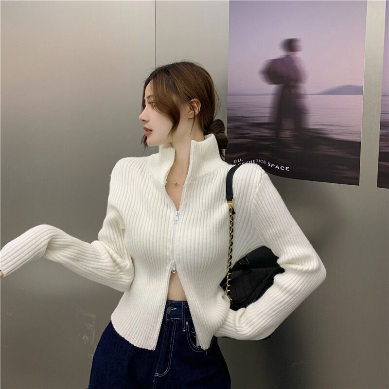 (4色選択可) カーディガン ニットカーディガン ダブルジップ ジッパー タイト ショート丈 トップス 前開き リブニット リブ編み 羽織り Vネック 長袖 無地 細身 スリム レディース 可愛い きれいめ シンプル カジュアル 大人 かわいい おしゃれ お洒落 上品 フェミニン 大人可愛い 大人女子 春 秋 冬 10代 20代 30代 40代 デート お出かけ 女子会 通勤 OL オフィス デイリー 普段着 ブルー 青色 ホワイト 白色 パープル 紫色 ピンク | Chère