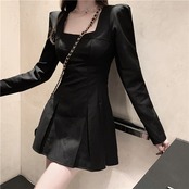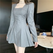 (色とサイズが選択可) ワンピース プリーツワンピース Aラインワンピース ミニワンピース ミニ丈 スクエアネック 長袖 無地 細身 スリム レディース 可愛い きれいめ シンプル カジュアル 大人 かわいい おしゃれ お洒落 上品 フェミニン 大人可愛い 大人女子 春 秋 冬 10代 20代 30代 デート お出かけ 女子会 デイリー 普段着 ブラック 黒色 グレー 灰色 | Chère