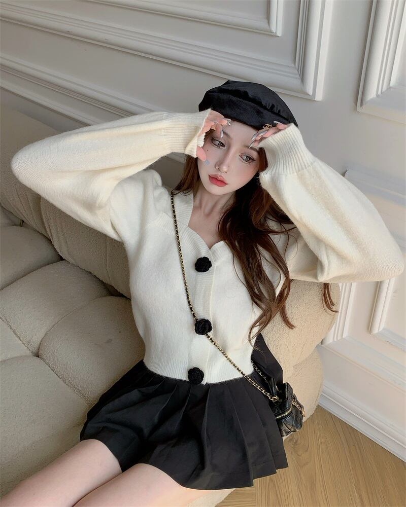 (2色選択可) カーディガン ニットカーディガン ショート丈 トップス 前開き ハートネック 長袖 パフスリーブ 無地 細身 スリム レディース 可愛い きれいめ シンプル カジュアル 大人 かわいい おしゃれ お洒落 上品 フェミニン 大人可愛い 大人女子 春 秋 冬 10代 20代 30代 40代 デート お出かけ 女子会 通勤 OL オフィス デイリー 普段着 ホワイト 白色 ピンク | Chère