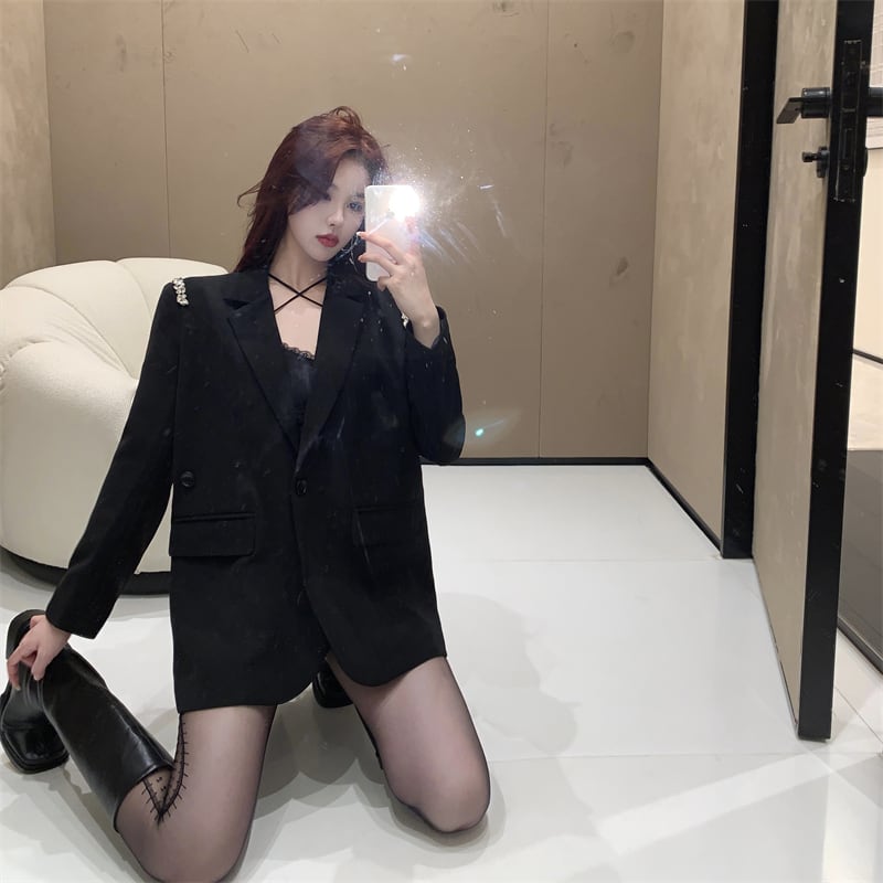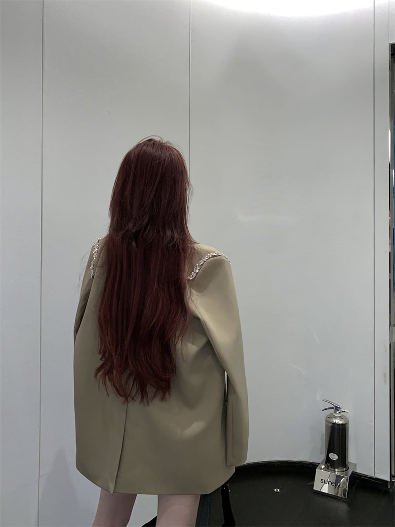 (色とサイズが選択可) ジャケット テーラードジャケット ダイヤビジュー ラインストーン ロング丈 アウター 羽織り 長袖 無地 ゆったり レディース 可愛い きれいめ シンプル カジュアル 大人 かわいい おしゃれ お洒落 上品 フェミニン 大人可愛い 大人女子 春 秋 冬 10代 20代 30代 40代 デート お出かけ 女子会 通勤 フォーマル デイリー 普段着 ブラック 黒色 カーキ | Chère