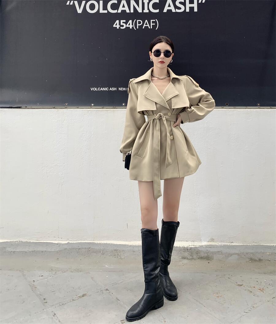 (2色選択可) コート トレンチコート ショート丈 ジャケット アウター 羽織り ダブルボタン Vネック 長袖 パフスリーブ ベルト 無地 ゆったり レディース 可愛い きれいめ シンプル カジュアル 大人 かわいい おしゃれ お洒落 上品 フェミニン 大人可愛い 大人女子 春 秋 冬 10代 20代 30代 40代 デート お出かけ 女子会 通勤 OL オフィス デイリー 普段着 ブラック 黒色 カーキ | Chère