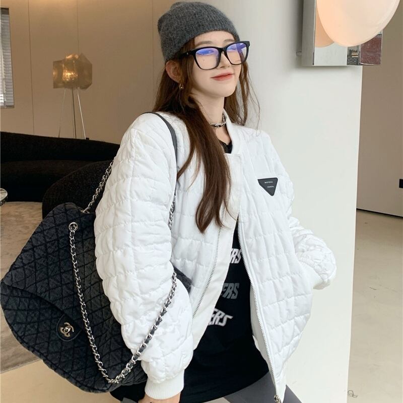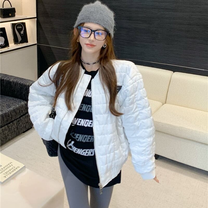 (2色選択可) アウター ジャケット 長袖 キルティング 厚手 ジッパー ポケット カジュアル ストリート系 シンプル おしゃれ ボーイッシュ こなれ感 ラフ ルーズ 10代 20代 30代 40代 通勤 通学 普段使い 休日 お出かけ 女子会 韓国系 ファッション あったか コーデ スタイル ホワイト 白 グリーン 緑 | Chère