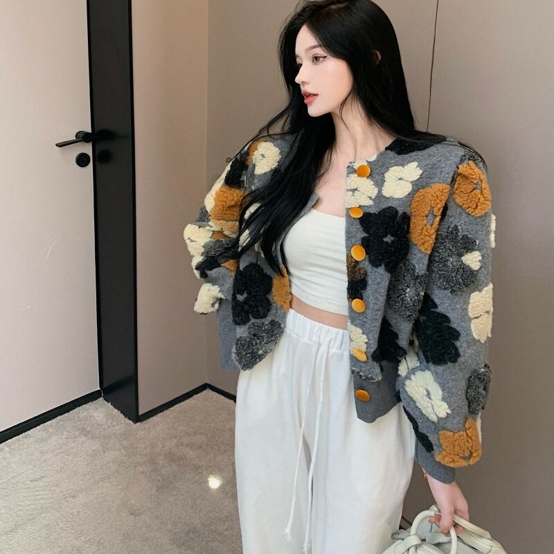(2色選択可) アウター ジャケット ショート丈 花柄 長袖 ラウンドネック ボタン シングルブレスト フリーサイズ カジュアル レトロ かわいい おしゃれ 大人可愛い アジアン 個性的 10代 20代 30代 40代 休日 女子会 デート お出かけ インスタ映え コーデ 韓国系 ファッション スタイル ピンク グレー 灰色 | Chère