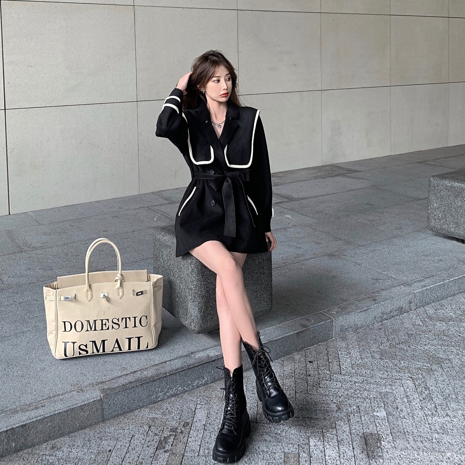 (2色選択可) アウター コート ショート丈 襟付き ボタン ウエストリボン カジュアル シンプル 大人可愛い おしゃれ かわいい こなれ感 キュート 大人女子 ルーズ 10代 20代 30代 40代 フリーサイズ 普段使い 通勤 通学 休日 お出かけ デート 女子会 モテ コーデ 韓国系 ファッション スタイル ブラック 黒 アプリコット | Chère